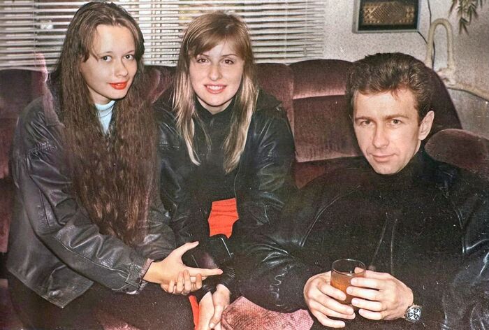 Валерий Сюткин с журналистками во время интервью в городе Воронеж, 1990-е годы.