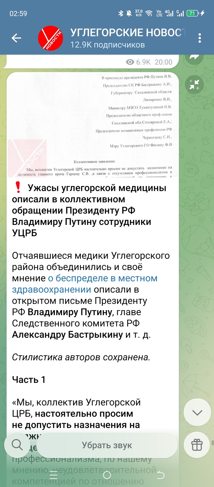 ❗️ Ужасы углегорской медицины описали в коллективном обращении Президенту РФ Владимиру Путину сотрудники УЦРБ
