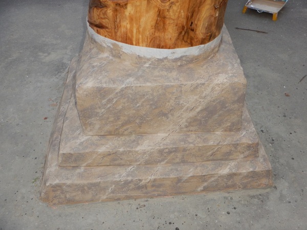В октябре у работы даже появился постамент. Он из кирпича. Каменщик и штукатур из меня так себе. Ну, раскраской постарались компенсировать…