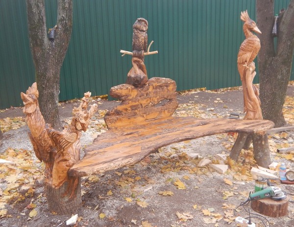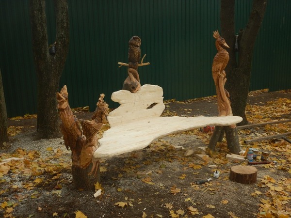 В сборе. Если на первой лавочке в основном фоткаются, то на второй – реально сидят. Собрал ее в пятницу, в выходные пилил новое бревно и наблюдал краем глаза. Приседают на уши на час-полтора.