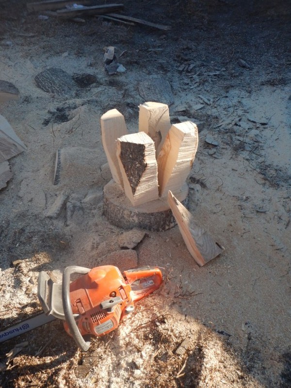 Тем временем, взял второе бревно и распустил его на два вот таких детали (три запила)