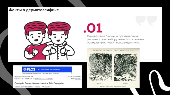 Ну, например, они говорят: смотрите, есть такие генетические заболевания, при которых у людей есть некоторые характерные особенности отпечатков пальцев, статистически значимыe, встречающиеся у этих людей чаще, чем у обычных людей. Но какое это имеет отношение к вашему тестированию?