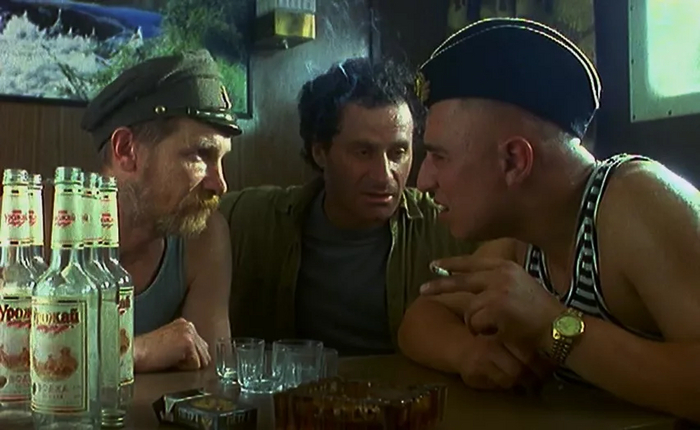 5. Как уже и было сказано, спонсорами ленты стала водка "Новый урожай". Они же предоставляли свою продукцию. Вот только они никак не ожидали, что их продукт будет использоваться по назначению. Полагая, что водка будет находиться в кадре только в качестве реквизита, они налили туда продукта невысокого качества.