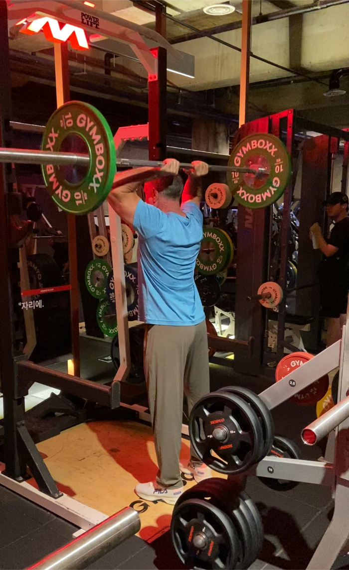 Глядя на этого великовозрастного спортсмена невольно задаются мыслью мало тренированные люди: на сколько хватит его позвоночного столба, проделывая такие упражнения в возрасте за 5о лет.