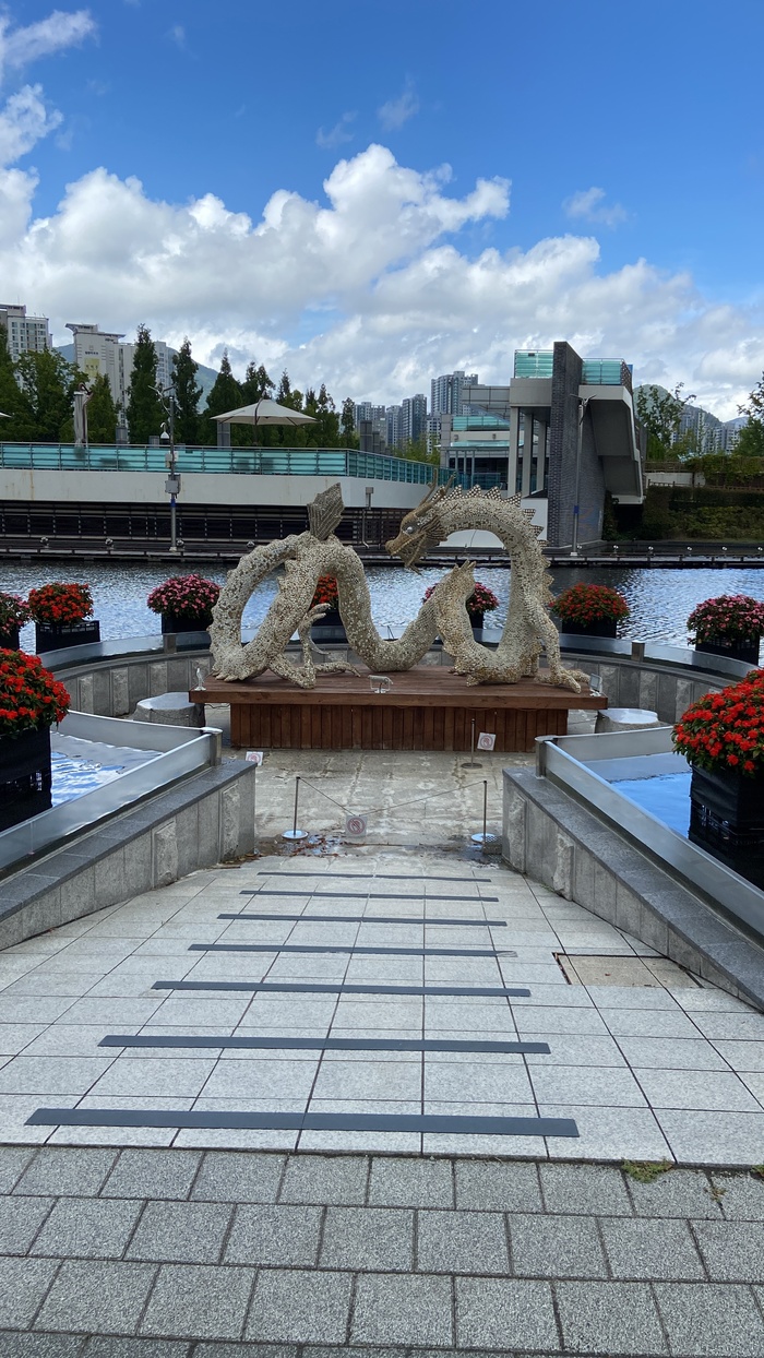 В общем мне все понравилось, особенно когда не куда не спешишь. Вышел с музея и пошел гулять по парку, посмотрел ландшафтный дизайн - он мне показался на "уровне", видно что архитекторы старались, думали головами, ну и сама природа в виде местных деревьев, кустарников позволяет творить искусство из них. На выходе сфоткал дракона в цветах у воды - мне пришлось по душе, так как сам я родился в год дракона, это вроде как про меня.