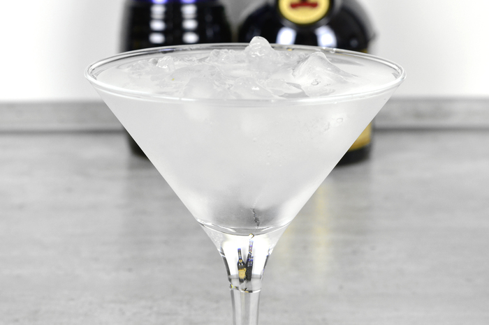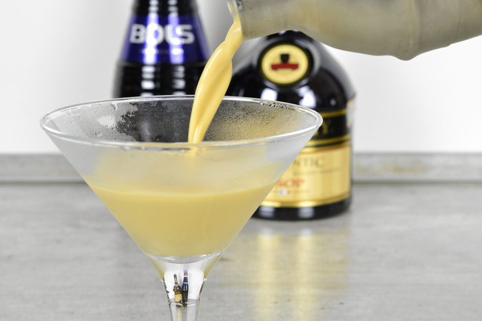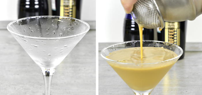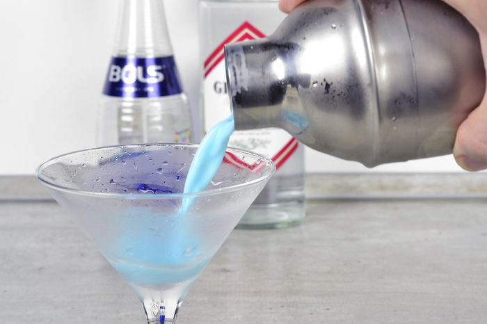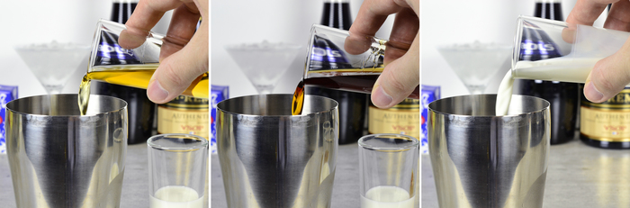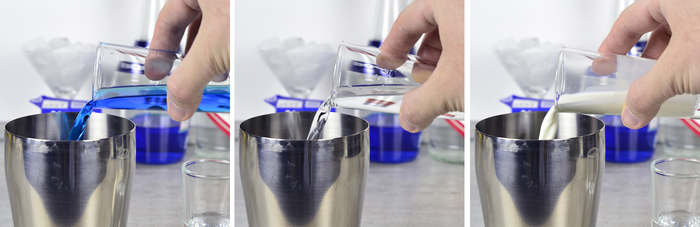 Сливаем из шейкера натаявшую воду и вливаем в шейкер ингредиенты: