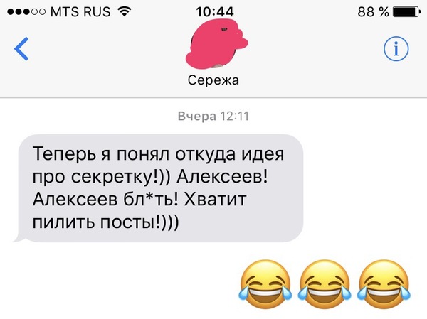 Тут доходит время до шутки про его друга, писателя Алексеева и глупых девочек, которые думают, что он... Гоголь, раз знаменитый писатель (что-то в этом духе). И тут становится все на свои места...