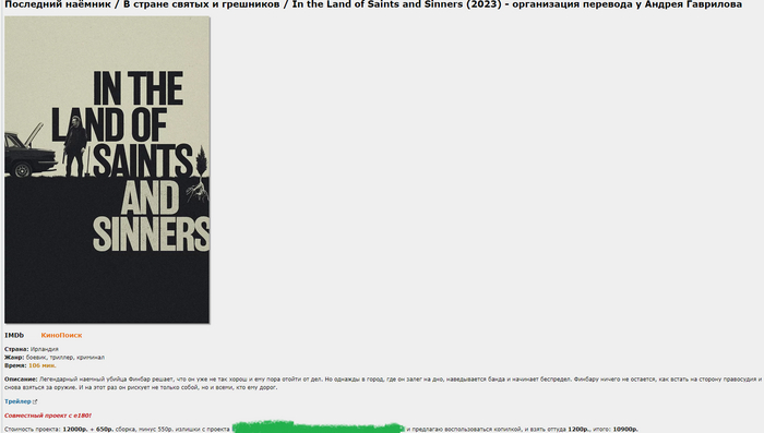 Раскрою для кого-то неявный секрет: организацией, точнее сбором денег занимается человек, которому далеко до хорошего вкуса - какой Рендер71-ый, он банально выбирает только новинки, как правило попроще и всякую другую проходную ерунду - только он там создаёт темы и собирает у желающих деньги. Если кто-то предлагает хорошее кино, этот Рендер сразу посылает такого человека далеко. И, конечно, играет на ностальгии. Как мне сказали, Гаврилов меньше берет, то есть, чел ещё и зарабатывает.