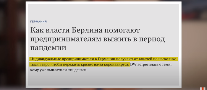 Говорит вот в Германии все очень просто, если ты частный предприниматель ты просто пишешь заявку и тебе переводят в течении недели от 5 до 15 тыщ евро: