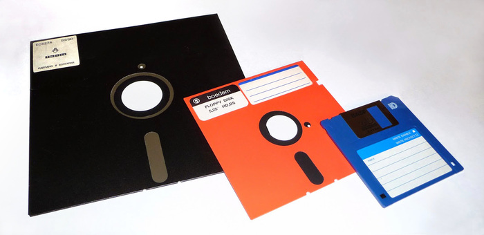 В реальности Тетрис могли распространять на 5-дюймовых дискетах — таких, как на фото посередине: