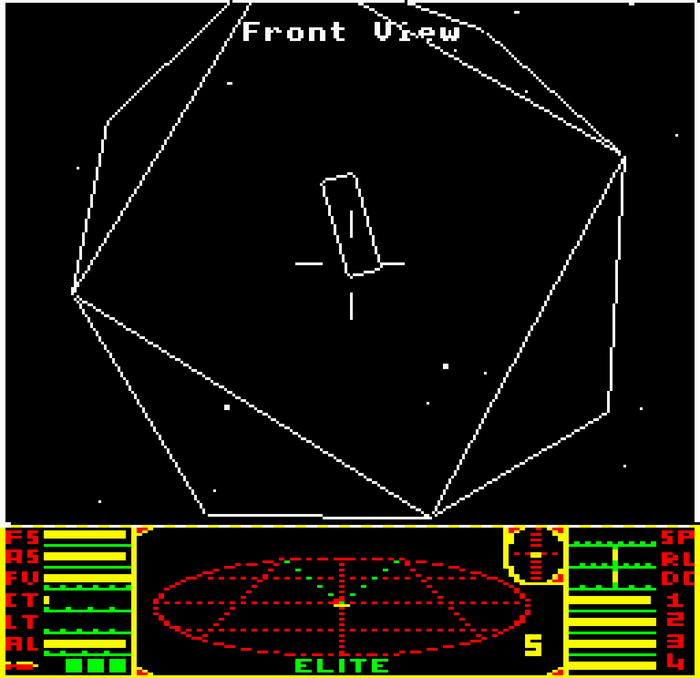 Скриншот игры Elite для компьютера BBC Micro, 1984