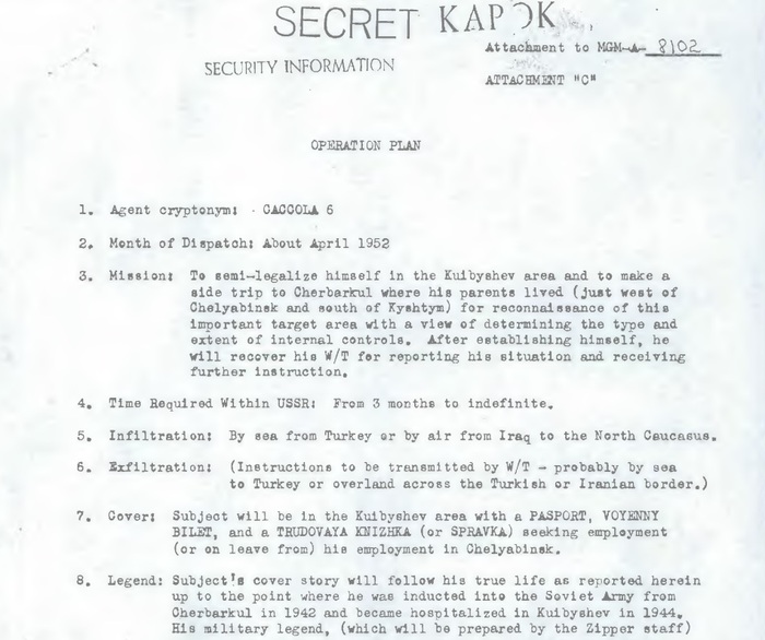 Как выше было сказано, в 1952 агент ЦРУ должен был проникнуть в СССР морем из Турции или по воздуху из Ирана, пройти Кавказ и осесть в Куйбышеве, а оттуда совершить вояж в Чебаркуль. Это, разумеется, был не единственный агент, посланный на Урал.