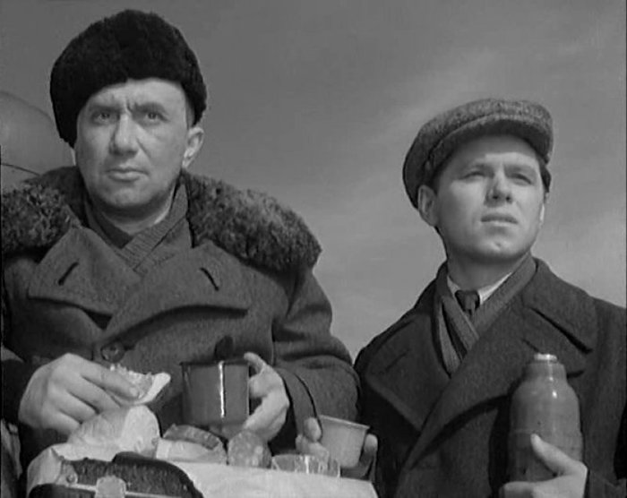 И при всём прочем великолепии есть в картине два человека, на которых лежит прямая ответственность за здешнее настроение. Это Алексей Смирнов и сам Леонид Быков. Оба их персонажа одинаково обаятельны каждый сам по себе, но ещё интереснее рассматривать их вместе. Тандем механика Макарыча и капитана Титаренко — тот самый винтик, который крепит лирический настрой «Стариков» к суровой прозе войны. Дуэт Смирнова – Быкова, с одной стороны, не даёт фильму скатиться в комедию, а с другой — сообщает ему особое меланхоличное, но при этом лёгкое настроение.
