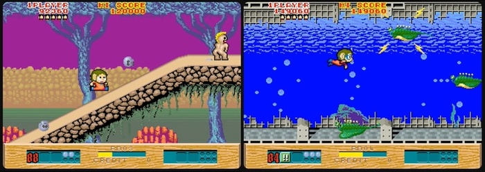 В аркадной версии ведётся подсчёт жизней, что делает её немного сложнее. В Master System у вас неограниченное количество жизней, но если вас ударят или вы упадёте в яму, таймер уменьшится или вы вернётесь на несколько экранов назад.