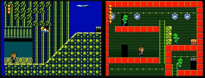 Самые сложные моменты в обеих версиях — это встречи в конце уровней, когда вам нужно пройти один экран, пока различные враги пытаются вас уничтожить. Чтобы упростить задачу, вы найдёте бонусы, которые позволят вам прыгать выше, восстанавливать таймер или дадут ограниченное количество «теневых» выстрелов, с помощью которых можно уничтожить большинство врагов.