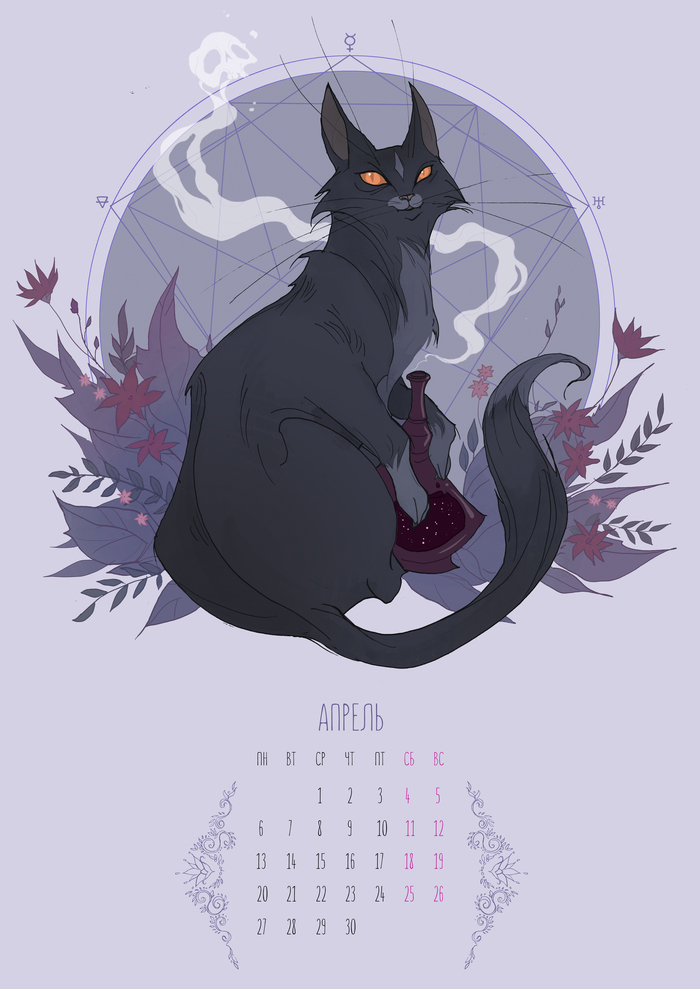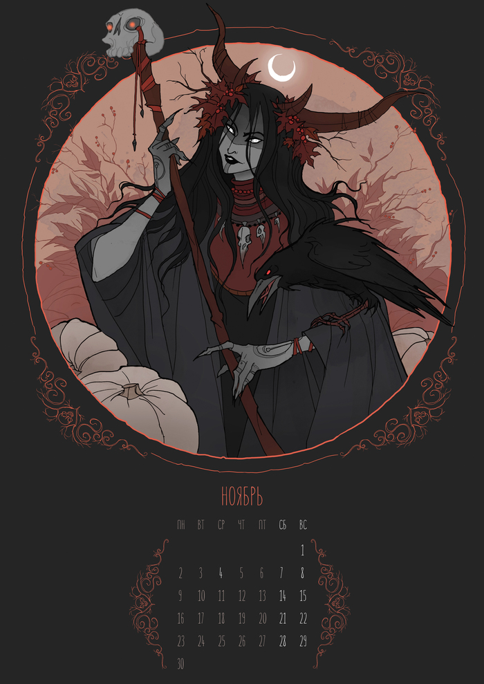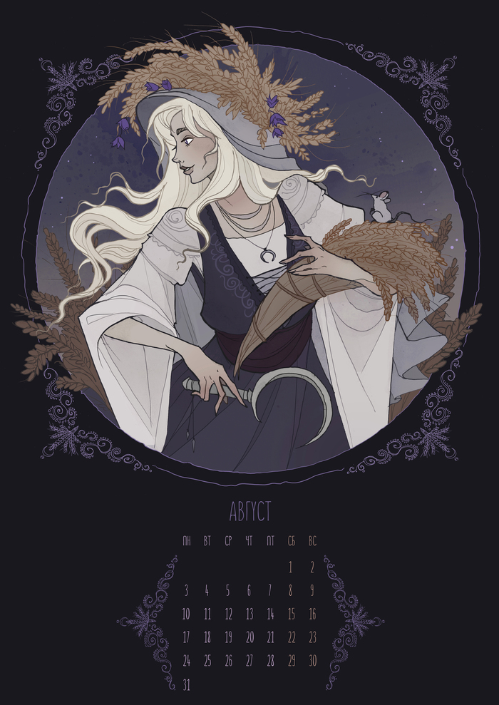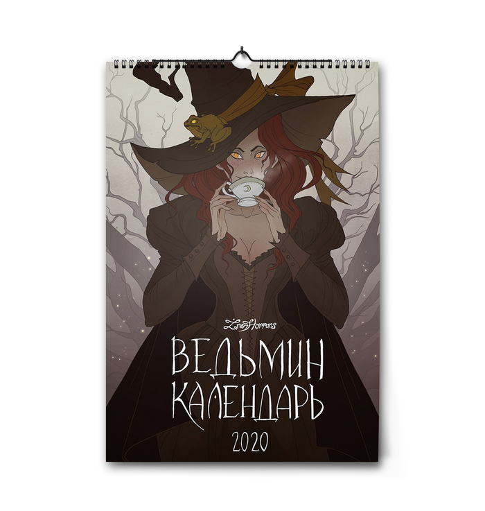 Сам календарь изначально был серией иллюстраций для "Колеса года", однако мы решили превратить его в настоящий календарь, заполнив недостающие месяца фамильярами ведьм.
