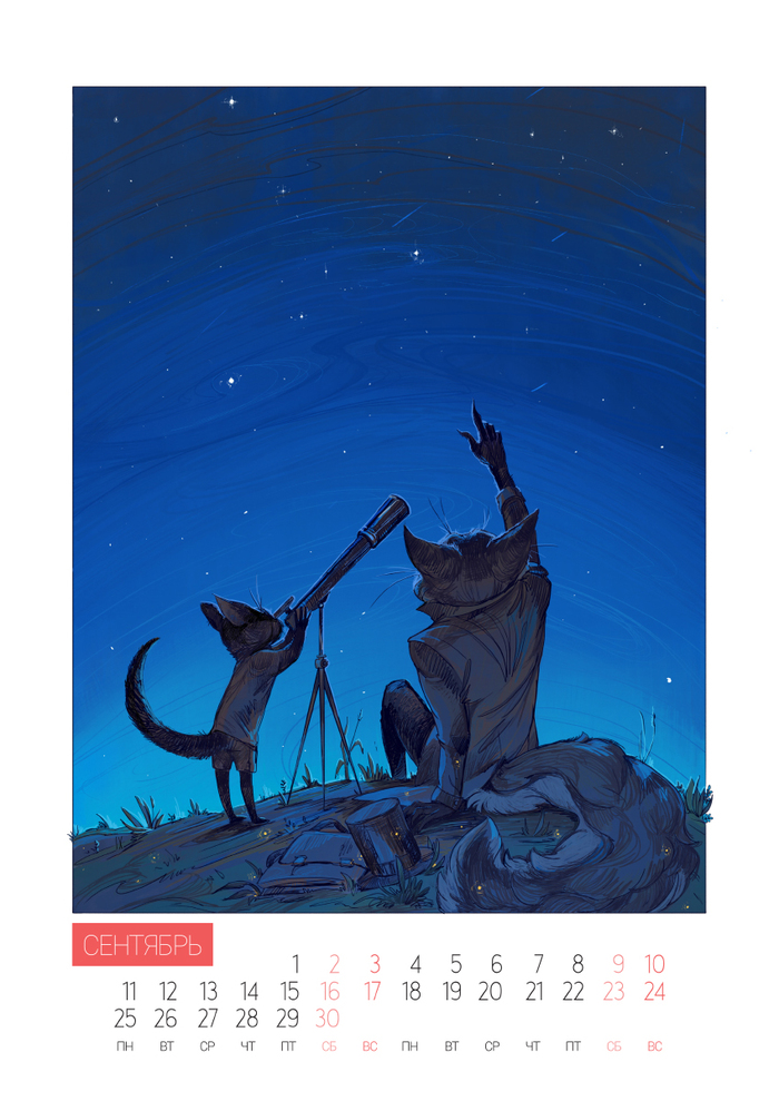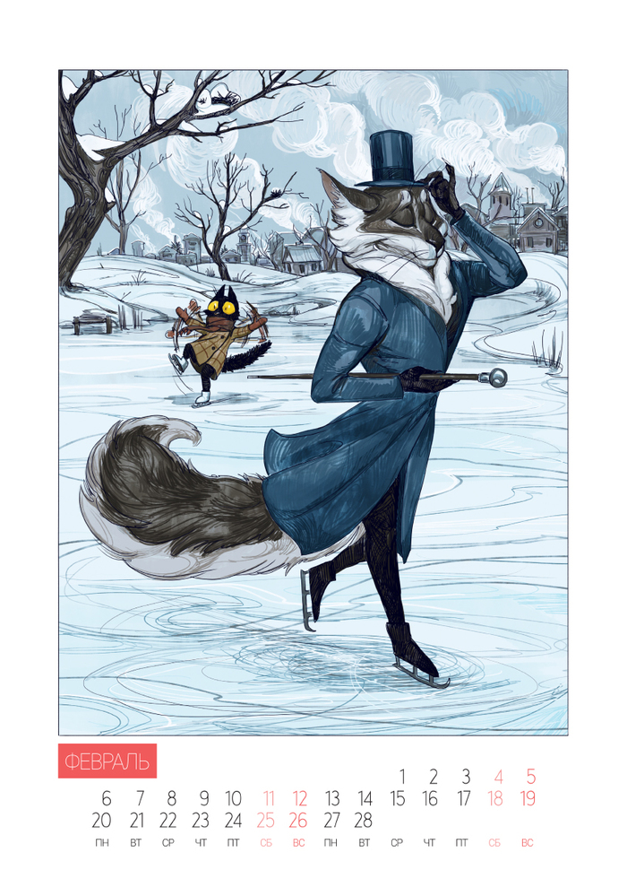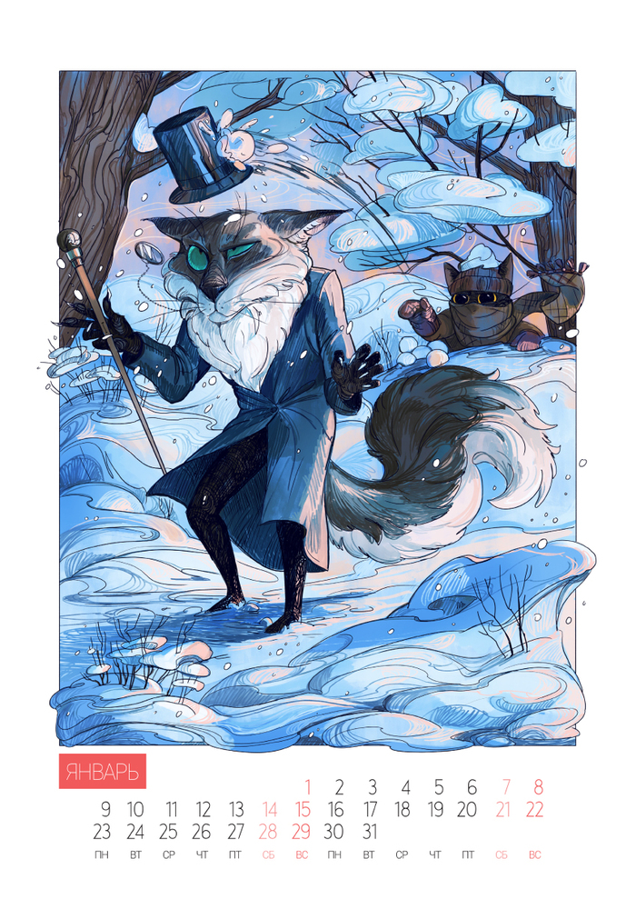 Пожалуй один из моих любимых художников в нашей пачке авторов - Яна. Она делает офигенные работы в традиционной технике для календарей. Всегда умиляет мысль, что где-то висит оригинал работы.