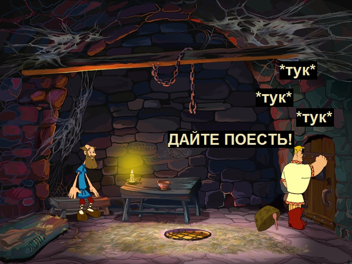 - О, это не препятствие твоей глупости. Отчего ты стережёшь того, кто тебя пленил? Ноги то у тебя не связаны.