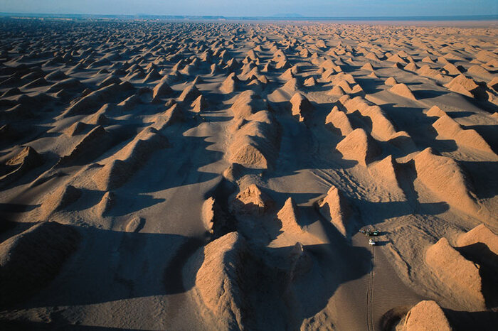 В середине Ирана имеется огромное светлое пятно - это пустыни, благо что расположен он сразу за южной половиной Средней Азии. Страна ариев располагает на своей территории большим числом соляных пустынь, которые занимают её внутренние районы. Самая крупная из них - Деште-Кевир.