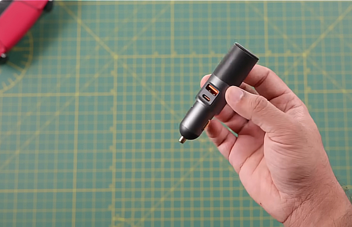 Главная особенность — встроенный выдвижной кабель, который аккуратно прячется внутрь корпуса, избавляя от спутанных проводов. Достаточно потянуть на несколько сантиметров, подключить гаджет и после зарядки вернуть кабель на место. Такое решение экономит место и поддерживает порядок в автомобиле или на рабочем столе.