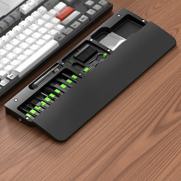 Компактный набор инструментов — универсальный помощник для дома, гаража или путешествий. В пластиковом кейсе собрано всё необходимое для мелких ремонтов, сборки мебели, настройки электроники или ухода за велосипедом.