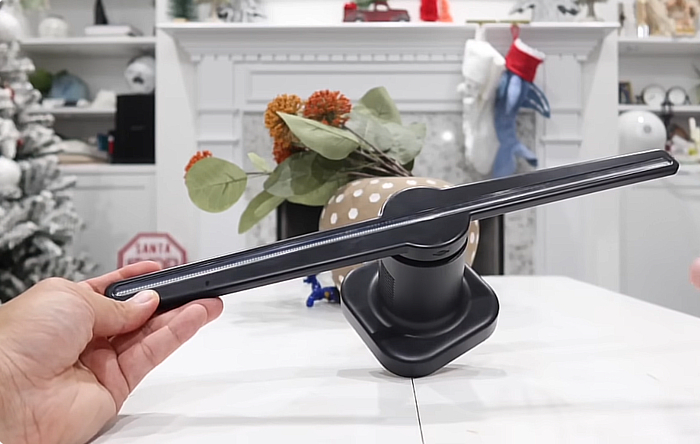 Принцип его работы основан на быстром вращении лопастей с 124 светодиодами, которые синхронно формируют изображение с разрешением 800×400 пикселей. Благодаря высокой частоте вращения человеческий глаз воспринимает изображение как полноценное видео, парящее прямо в воздухе.