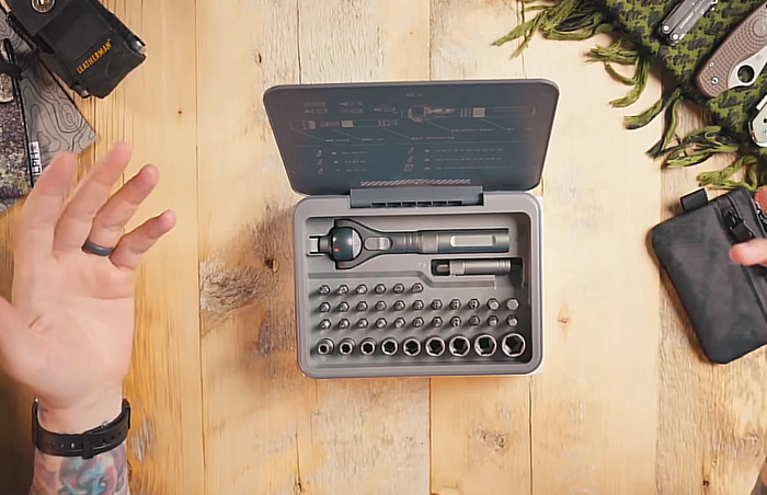 Главный элемент — миниатюрная трещотка с 45 зубцами, которая позволяет работать в труднодоступных местах, где стандартный инструмент попросту не поместится.