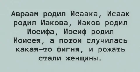 "Рожать должны мужики" (не буквально, это метафора). Всегда так было, с библейских времен.