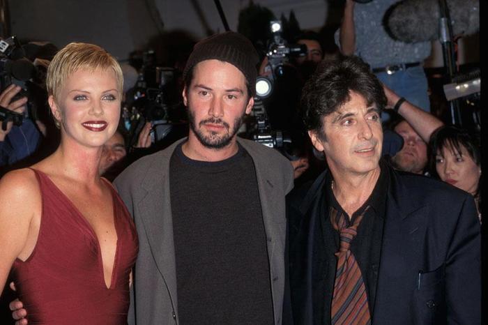 Шарлиз Терон,Киану Ривз и Аль Пачино на премьере фильма «Адвокат дьявола» (1997 год).