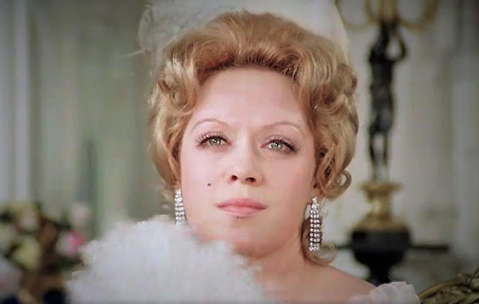 Любая женщина потерялась бы на фоне этих грантов, только не Фрейндлих. С невероятной грацией и магической притягательностью Алиса Бруновна стала стержнем сцены, вокруг которого вращаются кузен-виконт, жених-рантье и итальянский тенор. Для каждого из них у неё заготовлена своя интонация и модель поведения: материнская нежность и забота для самолюбивого виконта, кокетство для повесы Фадинара и неприкрытая страсть для молодого горячего певца. Актриса мгновенно переключается с одной модели поведения на другую в рамках единого пространства сцены, ни секунды не фальшивя в прямом и переносном смысле. Ведь в этой сцене Алиса Бруновна ещё и поёт.