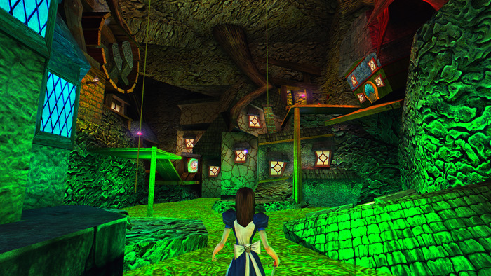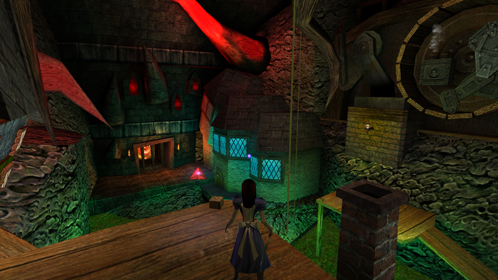 Нужно сказать, что изначально сюжет, по задумке Американа Макги должен был быть намного глубже, запутанней и жёстче. Но издатель игры Electronic Arts решил, что это уже будет слишком, поэтому в целом Alice получила довольно тривиальный сюжет. Но это не помешало игре получить высокие оценки как критиков, так и игроков. Не будем вдаваться в подробности игрового процесса, для этого потребуется отдельный пост (а там есть о чем поговорить!), а перейдем к технической стороне. Игра базируется на движке Quake 3 Engine, т.к Макги посчитал что именно он сможет в полной мере реализовать задуманную в игре визуальную часть. К тому же с этим движком были знакомы сами разработчики, ну и он просто был удобен. Для нужд игры потребовалось несколько модернизировать движок, с чем им помогли ребята из Ritual Entertainment. В релизной версии игры движок Quake 3 Engine был достаточно сильно модифицирован, использовал шейдерные эффекты и TGA-текстуры глубиной 24 и 32 бита. Стоит признать тот факт, что игра и впрямь получилась очень красивой для своего визуального стиля.