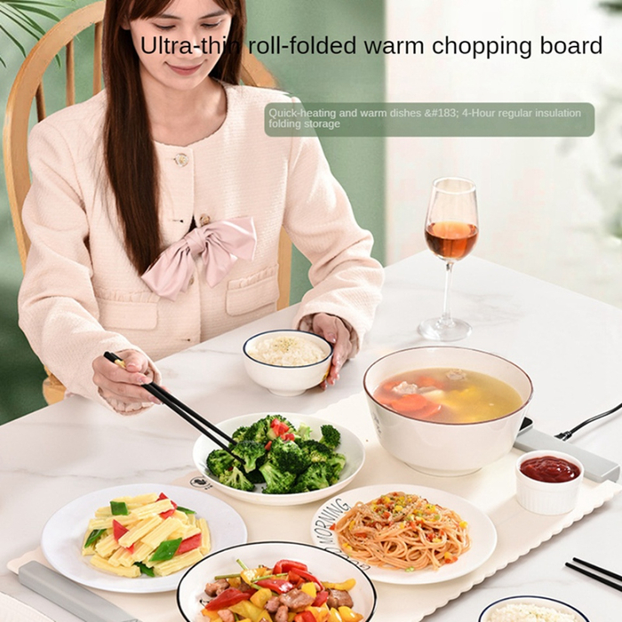 Нагревательный элемент способен поддерживать тепло от 1 до 4 часов, что удобно для семейных ужинов, когда члены семьи приходят в разное время. Подходит также для ускоренного размораживания продуктов, подогрева детского питания и сушки зелени. Материал с покрытием из пищевого силикона обеспечивает равномерное распределение тепла по поверхности и легко очищается от загрязнений.