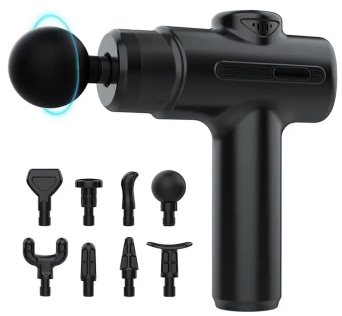 Массажный пистолет предназначен для глубокого мышечного расслабления после физических нагрузок и длительного рабочего дня. Устройство создаёт направленные ударные импульсы, которые помогают снизить мышечное напряжение, улучшить кровообращение и ускорить восстановление тканей. Восемь сменных насадок позволяют адаптировать воздействие под разные зоны тела — спину, ноги, плечи и шею.