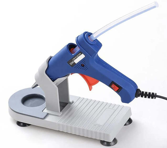 Держатель для клеевого пистолета предназначен для безопасного и удобного хранения инструмента во время работы. Конструкция удерживает пистолет в устойчивом положении, предотвращая контакт горячего сопла с поверхностью стола и снижая риск ожогов или повреждений. Формат особенно полезен при длительных работах, где инструмент приходится часто откладывать.