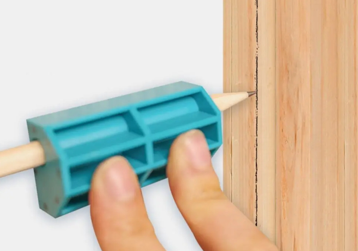 Корпус выполнен из прочного пластика, устойчивого к износу и механическим нагрузкам. Встроенные направляющие с разметкой в миллиметрах позволяют выбрать нужное расстояние с точностью до миллиметра. Достаточно вставить карандаш в одно из отверстий и провести линию вдоль поверхности — разметка получится ровной и симметричной по всей длине.