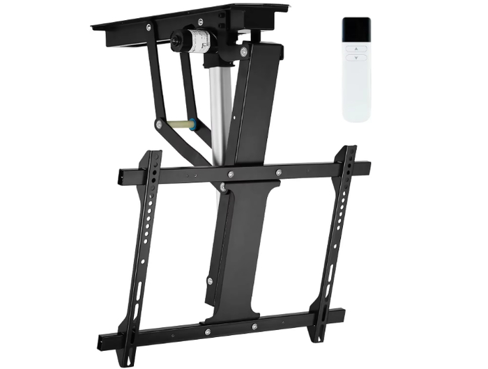 Электрический кронштейн для телевизора предназначен для установки экрана под потолком с возможностью автоматического регулирования угла наклона и высоты.