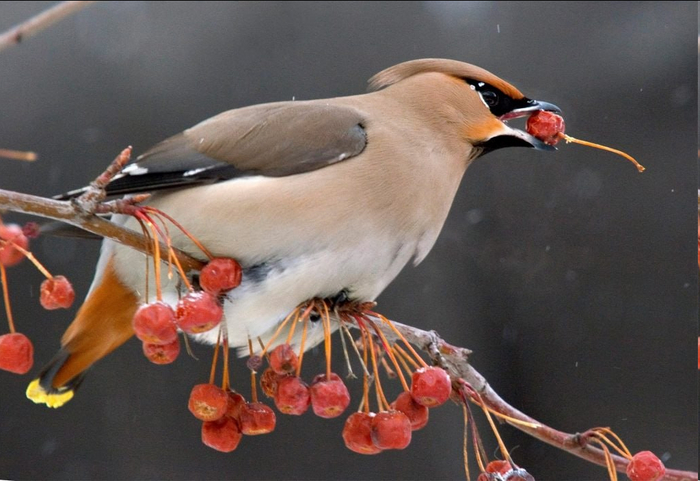 И хотя основу зимнего питания этих птиц действительно составляет рябина, истории о пьянстве свиристелей биологи ставят под сомнение.