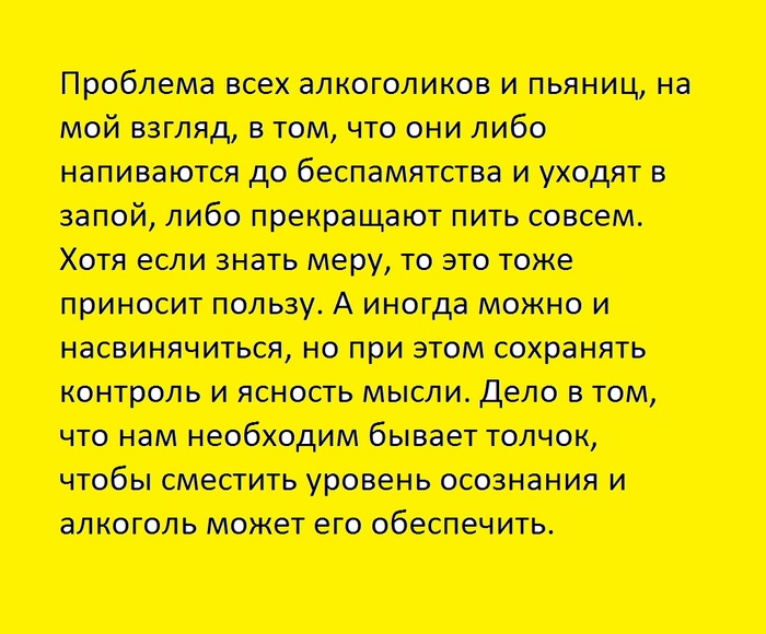 Стал ещё больше пить, потому что не выносил уже эту пустоту в сердце, неприятную работу, четырёх стен в доме по вечерам в полном одиночестве, своих "друзей", с которыми нельзя просто побыть вместе без алкоголя.