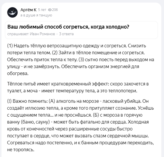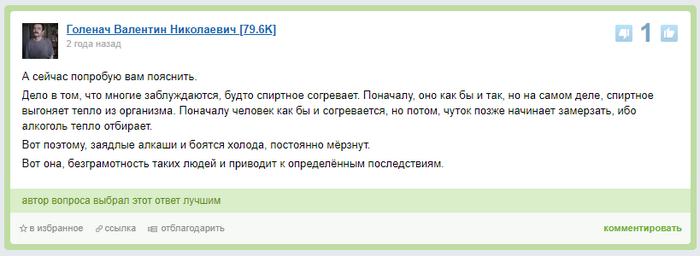 Я в юности вышел как-то курить зимой вечером(или гулять пошёл, я уже не помню), вечер, темно..перед подъездом смотрю - туловище валяется у тополя. Штаны спущены, видимо, поссать решил и воттка с ног сбила. А мороз 30+, начало 00х, тогда морозы сильные были на Урале. Поднимать его начинаю - тяжёлый - одному вообще никак..смотрю на лицо - дядя Серёжа из соседнего дома, языком еле ворочает, но ворочает) Смотрю - знакомый идёт, я такой: АРтур, помоги! Взяли его, натянули ему штаны и поволокли под плечи до квартиры, сдали жене) Потом "спасибо" говорил) Просто приятно, что, возможно, человеку жись спас..