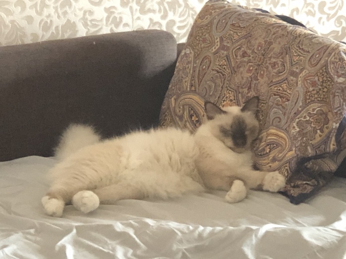 Немного расскажу и про нашего Марсюшу. Его мы искали не так долго. Наткнулись на заводчика бирманцев почти сразу. И два посещения плюс два комка шерсти вообще не дали мне никакой аллергической реакции. Этот бирманец оказался для меня практически полностью гипоаллергенным. Не исключаю, что реакция всё-таки была, но настолько ничтожная, что организм успевал успешно с ней справляться даже при наличии другой кошки в доме. Марсюшка спал со мной в одной постели, я регулярно с ним обнимался, играл, гладил, тискал и не испытывал при этом никакого дискомфорта. Возможно, в том числе, из-за большой взаимной любви))))