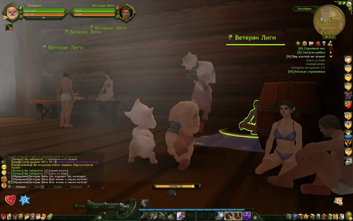 В принципе в Аллодах Онлайн всё очень хорошо с текстом. Нет ляпов, нет каких-то высокопарных речей, а если и есть, то от заведомо "душных" персонажей вроде магов или всяких старейшин. Проблемы в игре не "вселенского масштаба", а довольно приземленные. У кого-то огромные клещи жрут деревья возле лесопилки, кому-то нужно припарки для солдат сделать, кому-то веники нарубить и затем попарить мужиков. Только в Аллоды Онлайн я получил возможность попарить рандомных мужиков в бане, будучи полностью голым (гибберлингам, видимо, не нужно нижнее белье).