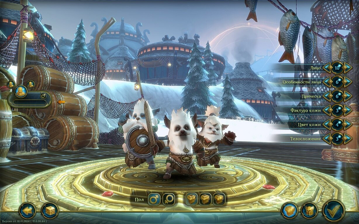 Кастомизация, естественно, не космос. Определяем пол персонажа, вслепую выбираем необходимые нам параметры внешности вроде прически и черт лица из готовых пресетов, можем покрутить, приблизить, посмотреть персонажа в экипировке разного уровня. Всё по классике. Т.к. Гибберлингов трое, то и кастомить я могу сразу троих. Таким образом у меня появились Пупырки - двое силачей и одна красопетка.