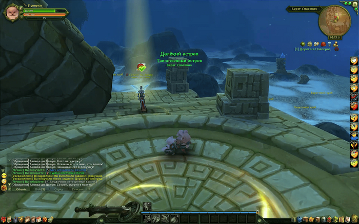 Но оказываемся не в Новограде, а в Далеком астрале, т.е. черт пойми где. По сути, Далекий астрал - это продолжение обучения, только в уже более приземленном формате, без заскриптованных сцен и озвучки, с типичными квестами в духе "убей мне 12 гадюк" или "собери 10 ягод". Те не менее, задания не скучны, т.к. у них есть описания, и описания эти понятны. Как давно вы читали описание заданий в MMORPG? Я - почти никогда. Миры этих игр были чужды для меня, потому я просто брал квесты и бегал по маркерам на карте, набивая опыт и собирая шмот. Возможно, я повзрослел, но в Аллодах я реально вчитывался в задания, т.к. зачастую написаны они интересно и понятно.