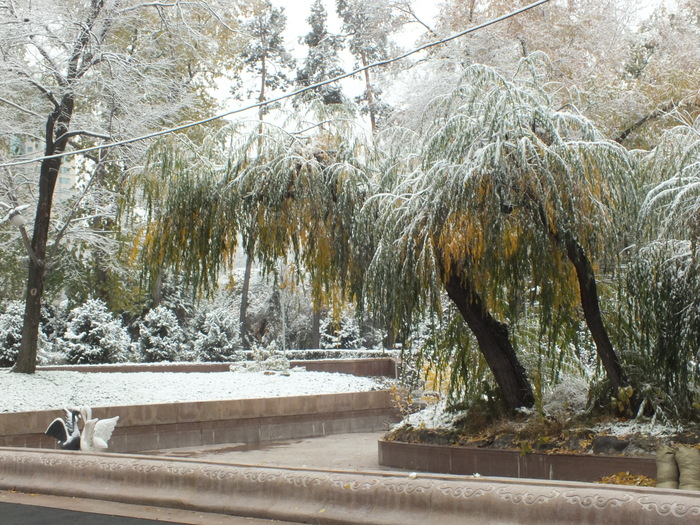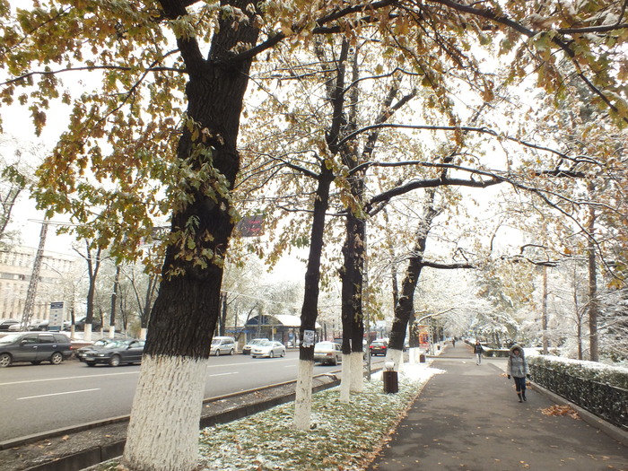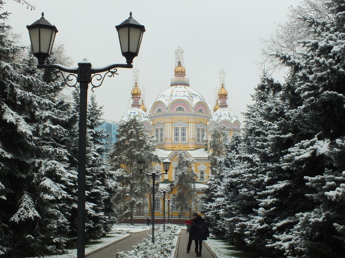 Подъем в 8, сборы и снова дорога. Ощущаю себя весьма бодро, хотя спали только 4 часа. Подъезжаем к Алматы, заснеженные деревья в изморози, подбеленная тем же веществом земля. Алексей уточняет место разгрузки в городе, помогаю ему с навигацией, выводя машину в назначенную точку.