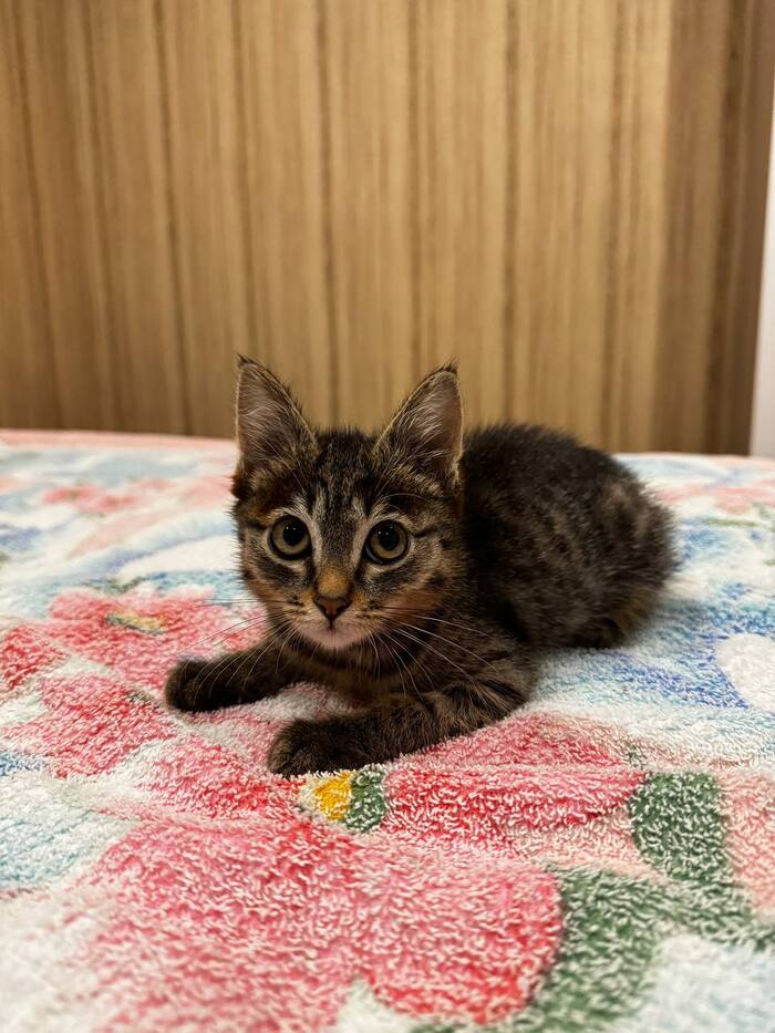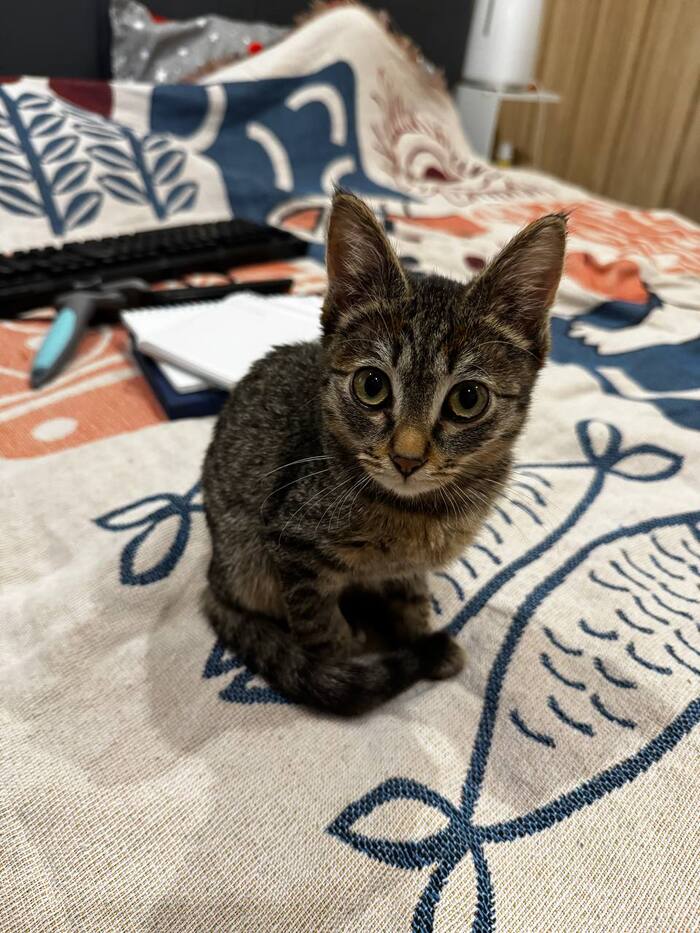 Окрас полосатый с пятнышками. Социализирован среди других кошачьих.