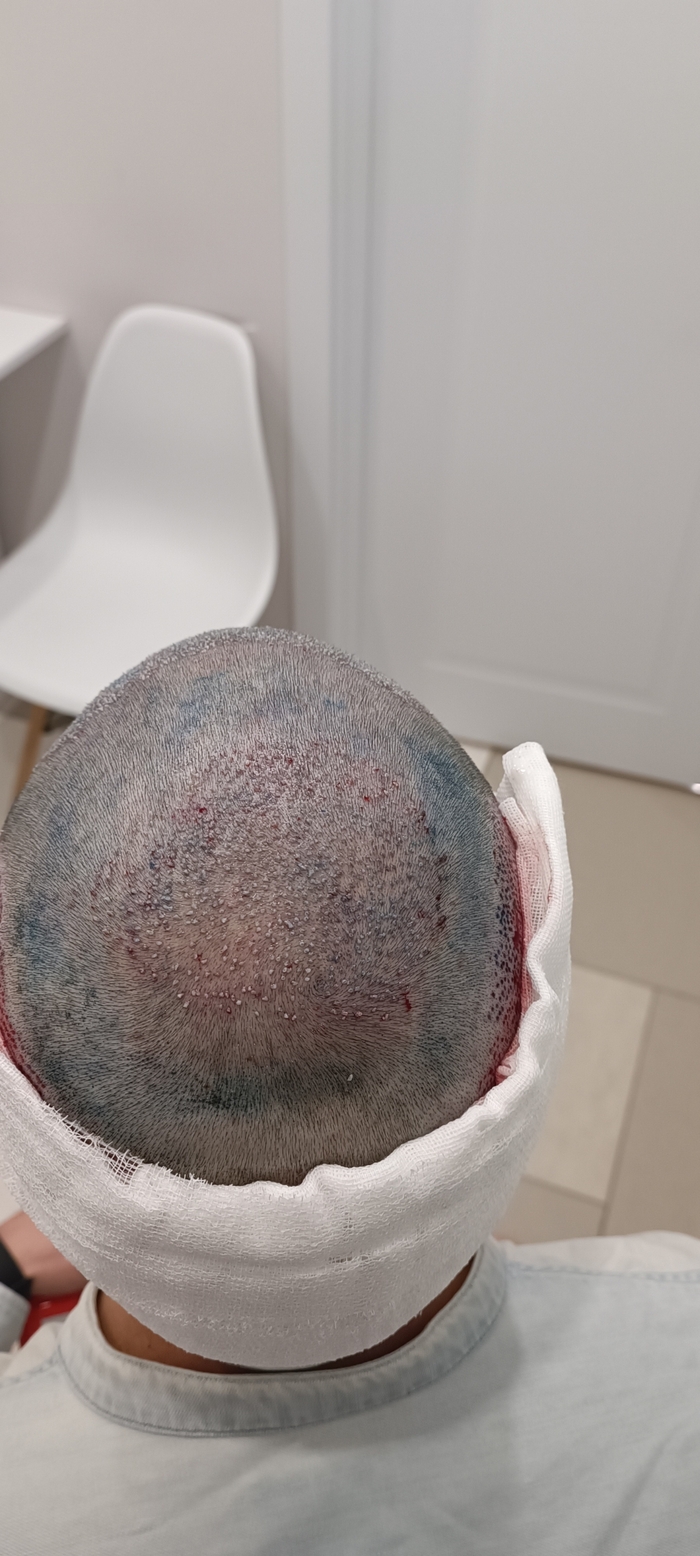 Первое время я расстраивался, но потом вспомнил, что хороший результат это приживаемость 85-95% волос, поэтому забил болт, лучше уж так, чем пролюбить из-за воспаления N-ное кол-во волос.