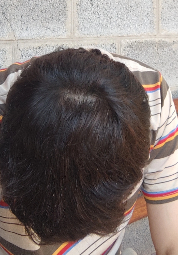 Уже неплохо оброс, видно странную линию волос, но это меня не смущало и я записался на стрижку, благо мой врач разрешил.