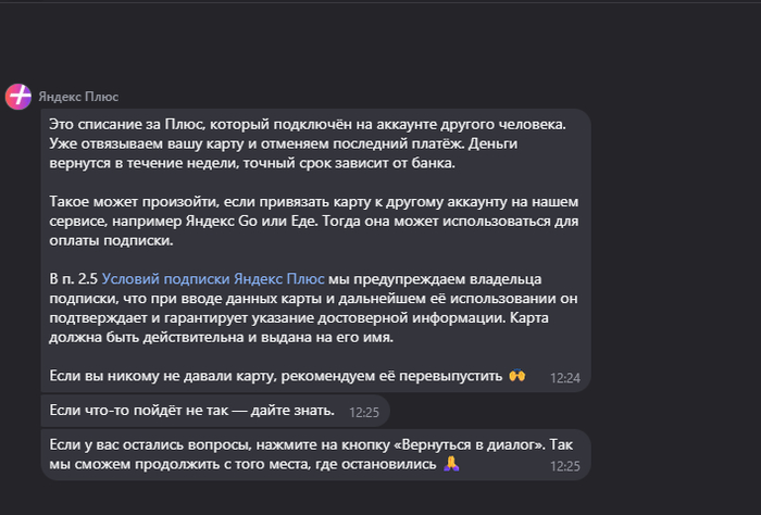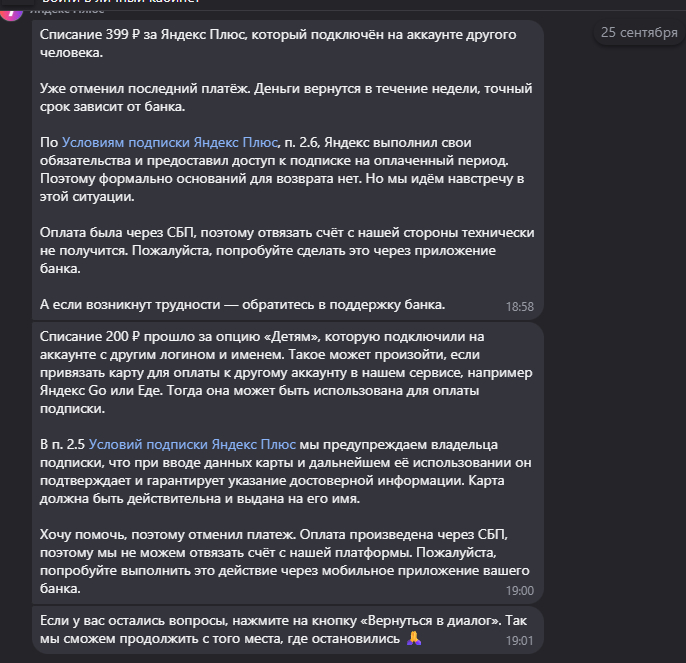 Оказывается сняли плюс потому что он подключен "у другого человека". У какого нахрен другого человека? Я единственный владелец карты. Моментально вернули деньги - не задавали никаких вопросов, уже тогда мне показалось что это как в анекдоте - "не прокатило". Прошло меньше месяца - аналогичная ситуация по карте которую я выпустил ДВЕ НЕДЕЛИ НАЗАД. Снова списание - снова за другого человека. Снова возврат.