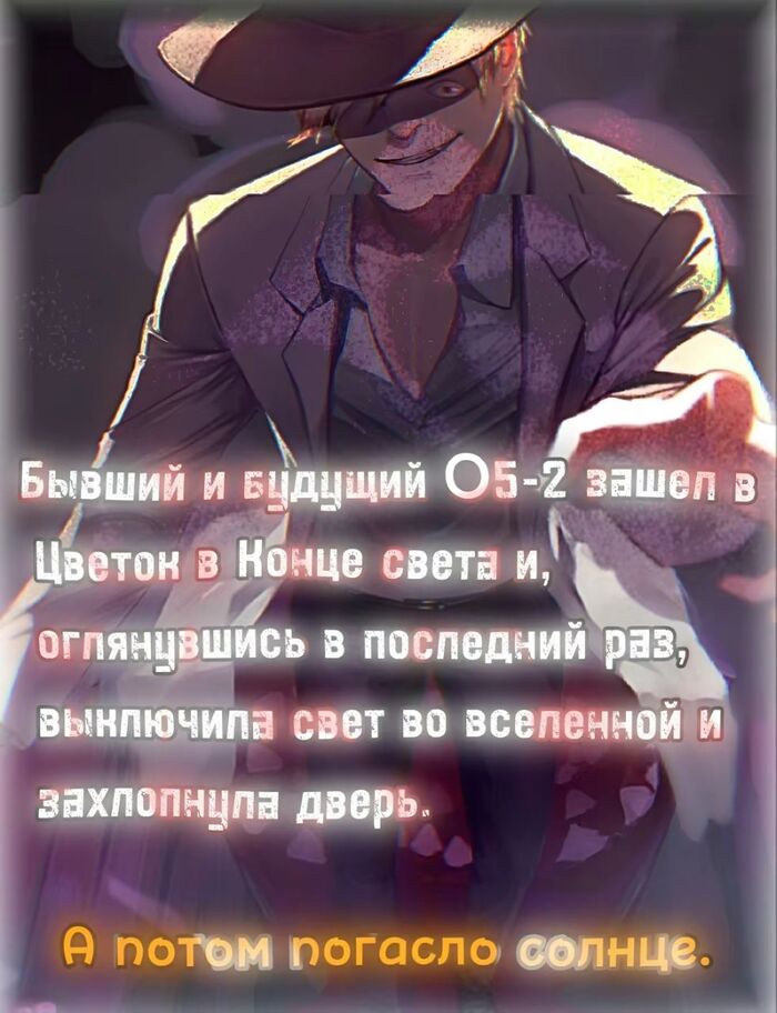 Бывший и будущий О5-2 зашел в цветок в конце света и, оглянувшись в последний раз, выключил свет во вселенной и захлопнул дверь.