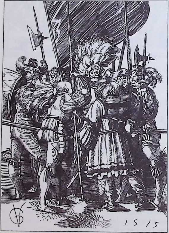 Или картина Урса Графа, изображающего ландскнехта и швейцарца.